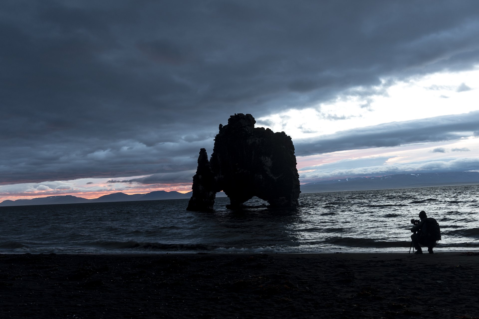 犀牛石Hvitserkur Troll清晨時刻只有極少數的攝影愛好者,守在這裡等待日出。