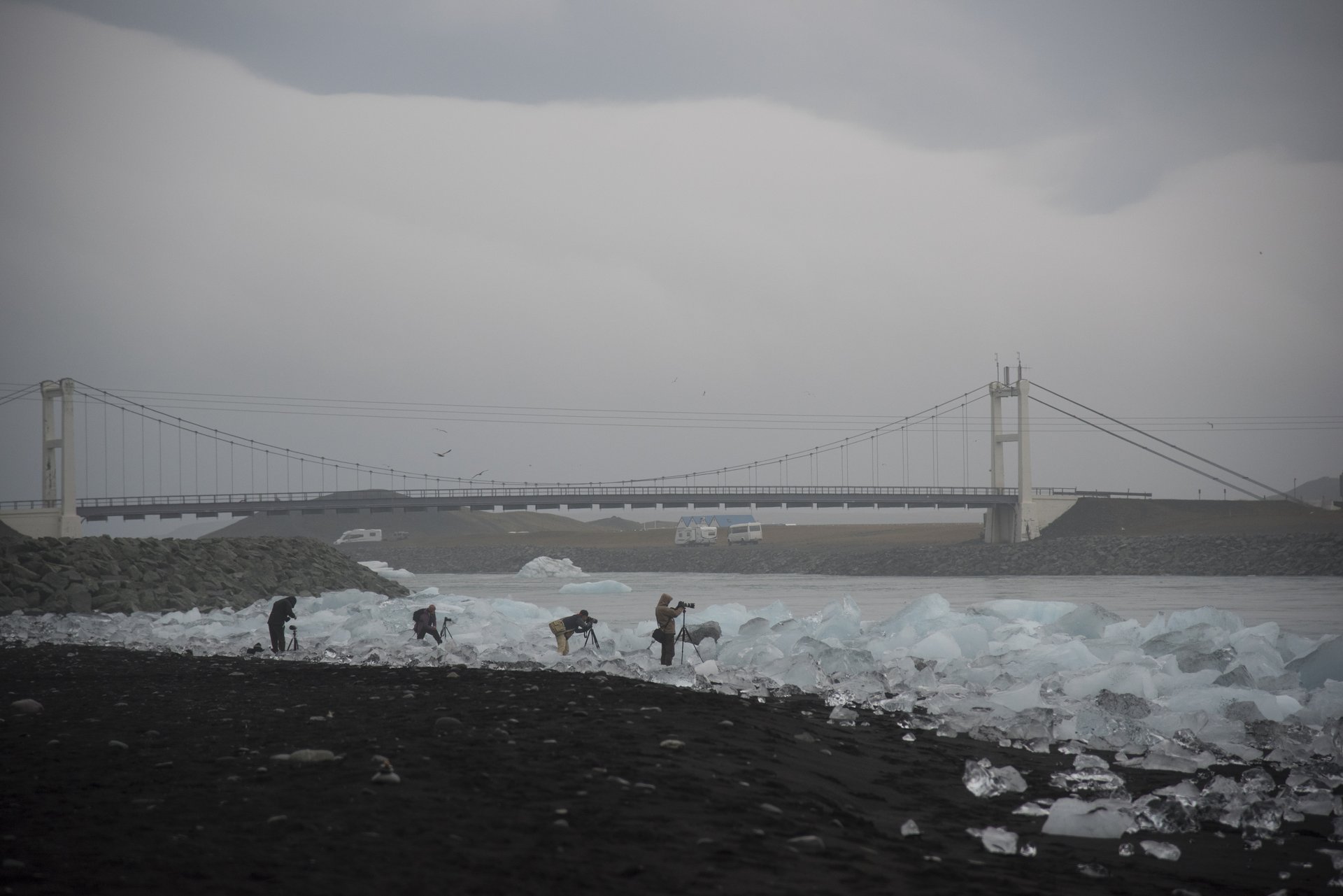 Jokulsarlon Lagoon 冰河湖天氣不算好的清晨,攝影師們還是賣力的工作著。