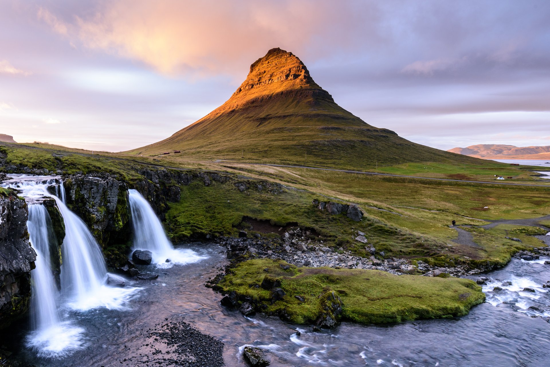 Kirkjufell 教堂山山坡邊的小瀑布,配上遠處的教堂山,形成完美的組合!