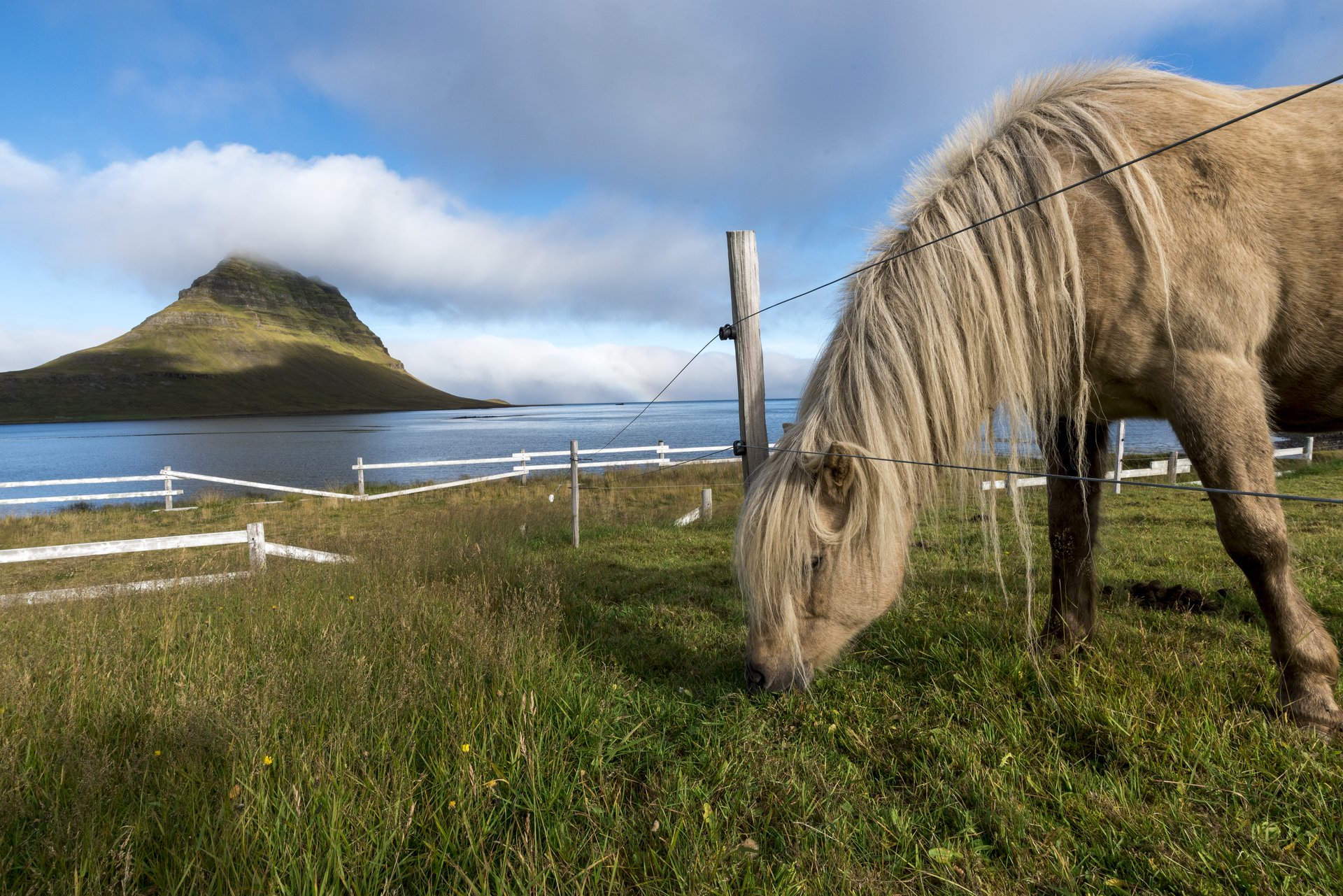 Kirkjufell 教堂山溫馴的冰島馬,專心的吃草,不認真欣賞這美麗風景。