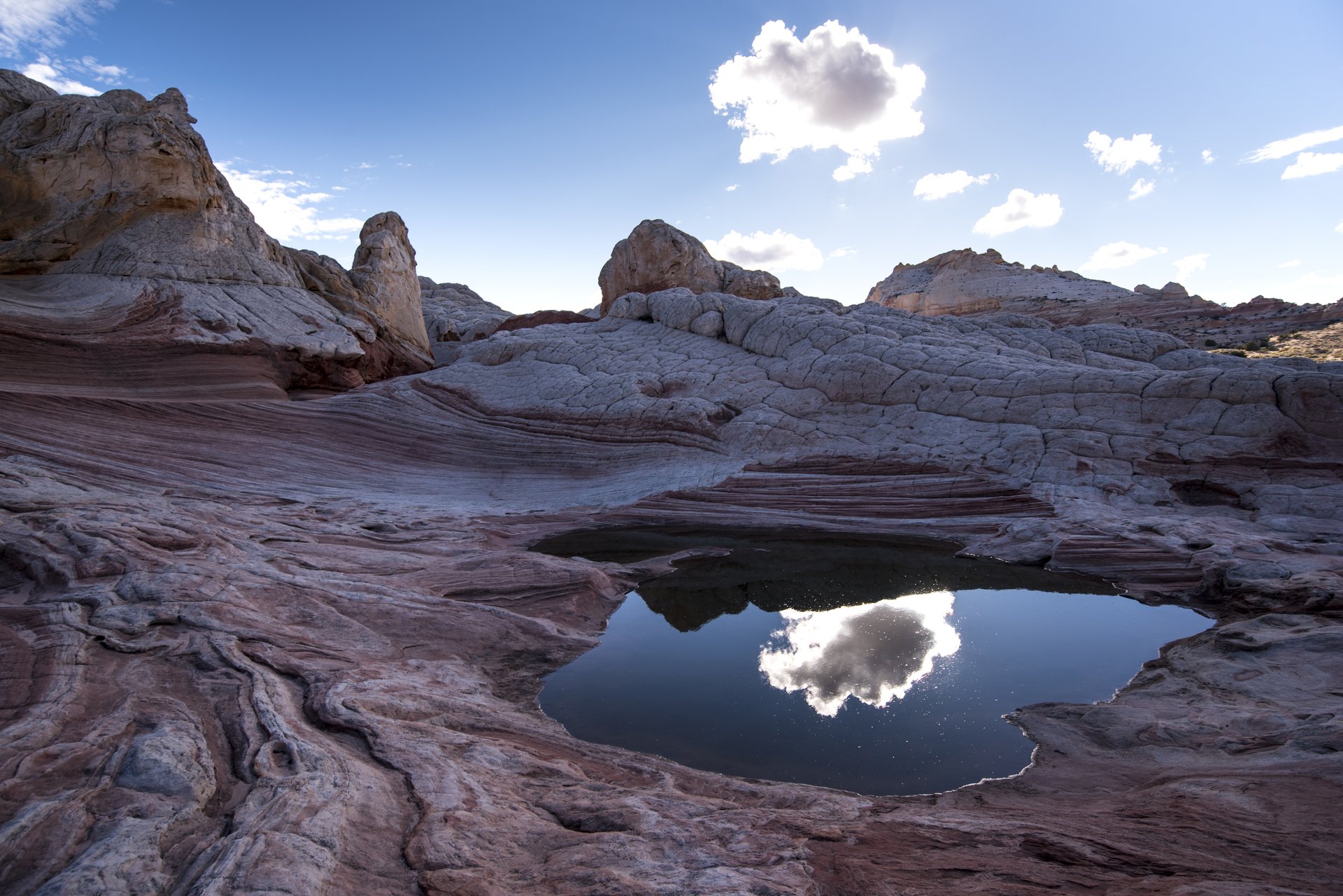 White Pocket 白口袋前幾天下雨積起的小水池,讓奇特的White Pocket地形更空靈了。