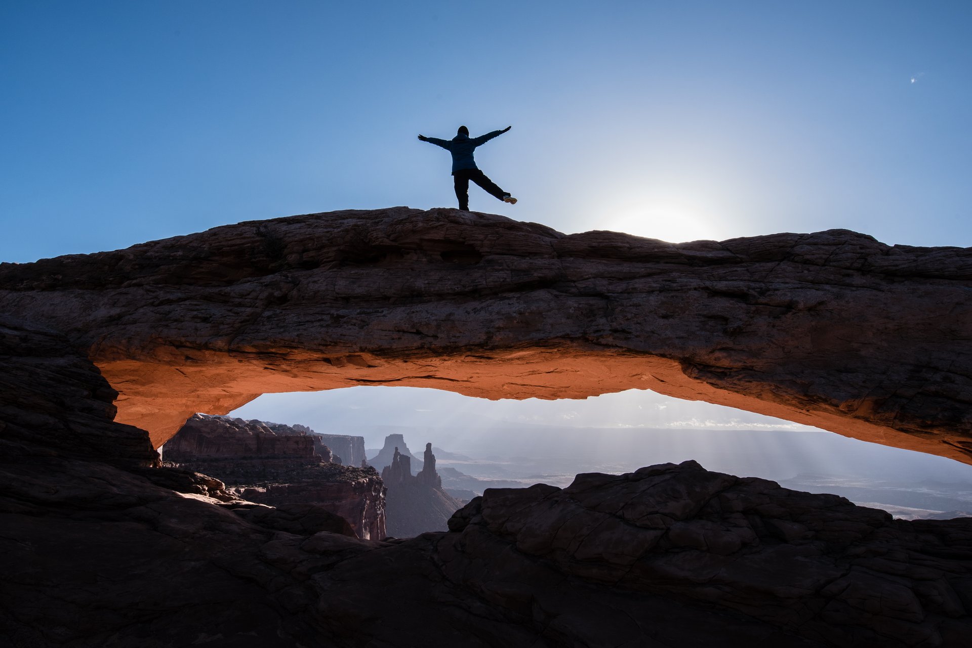 Mesa Arch 梅薩拱門這是錯誤示範的相片,天未亮就摸黑進來,等天亮拍完照要離開時,才發現有禁止攀登的告示牌,我真的不是故意的。