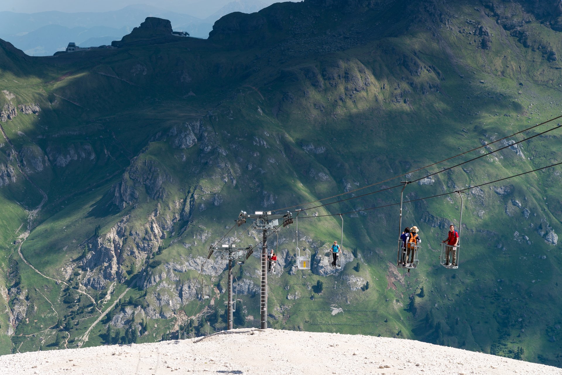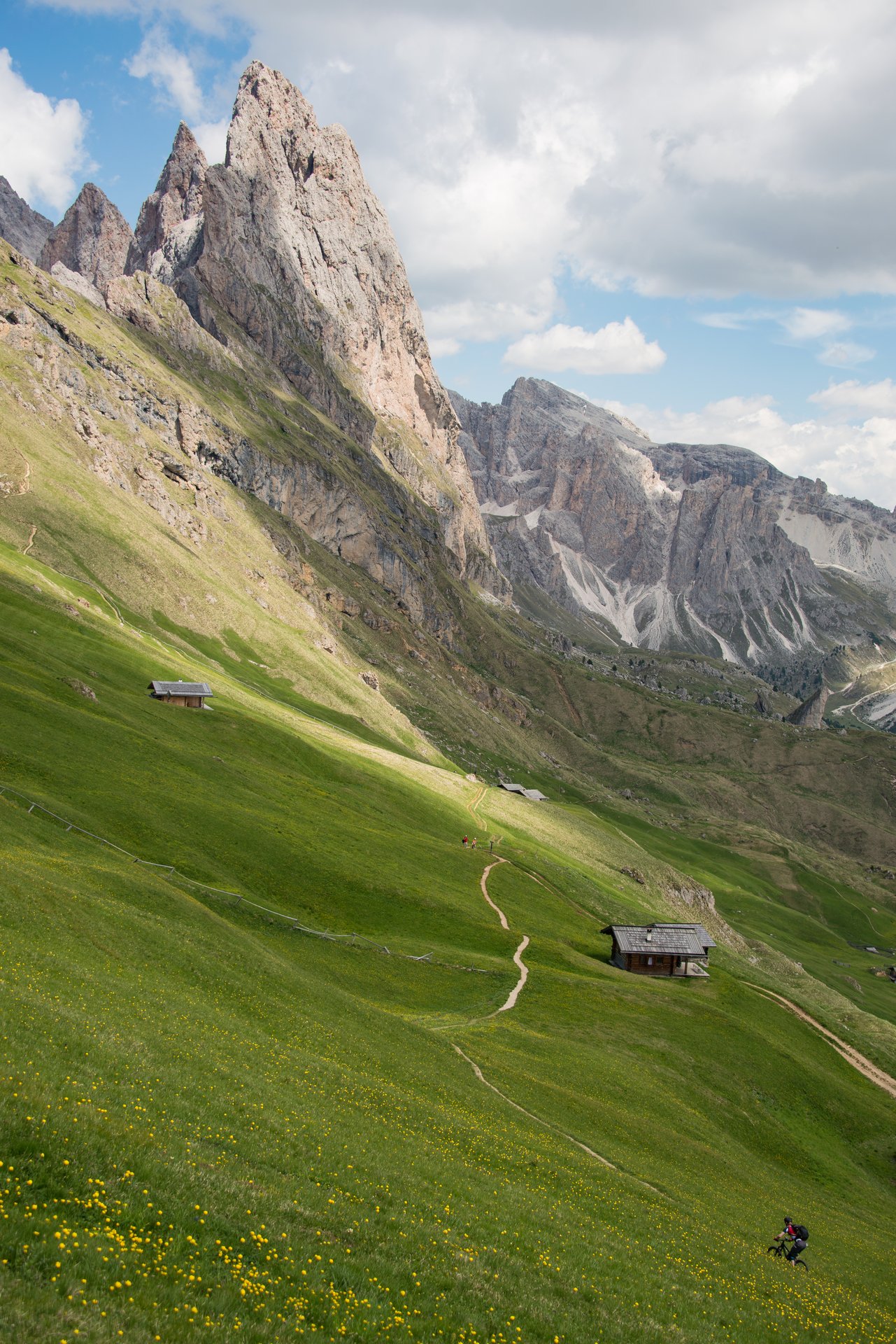 Odle Mountain好多人牽著越野單車搭乘纜車上山,然後恣意的在山野裡奔馳。