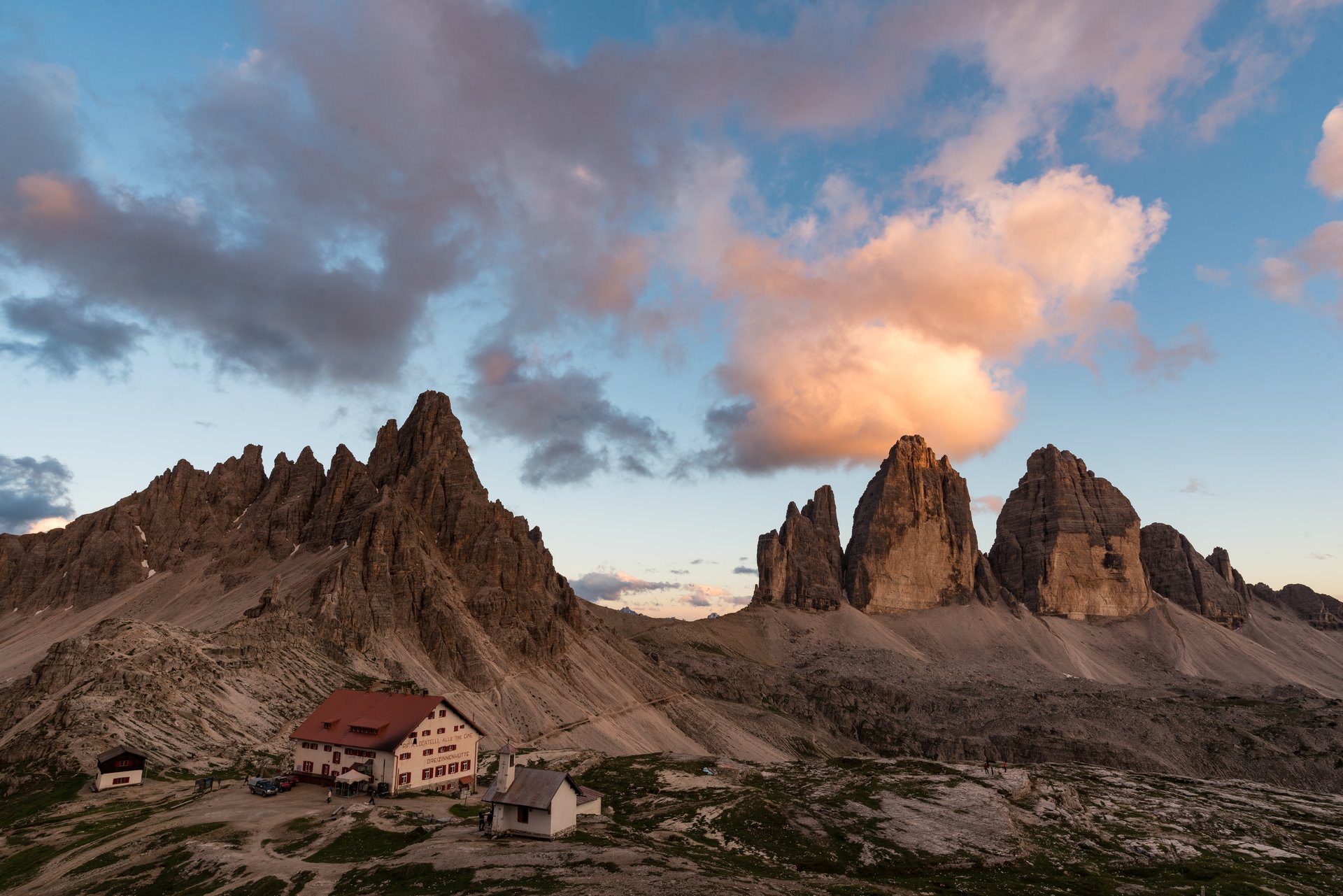 Tre Cime di Lavaredo夕陽餘暉照在三尖峰頂,似乎在預告今晚的星空會很精彩。