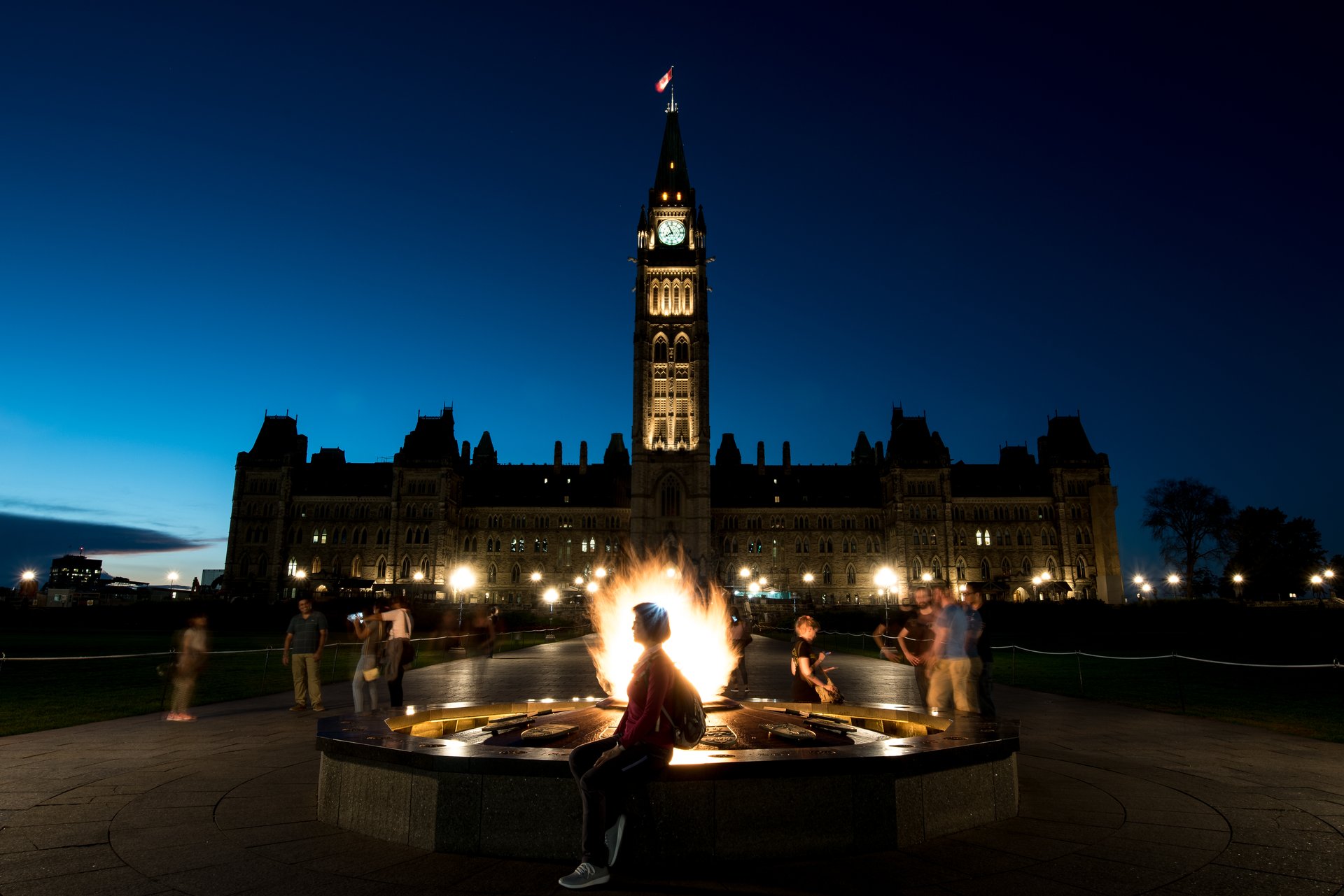 渥太華國會大廈廣場前有個水池,上方有火在燃燒,這是百年火焰(Centennial Flame),水火交融象徵和平與包容。