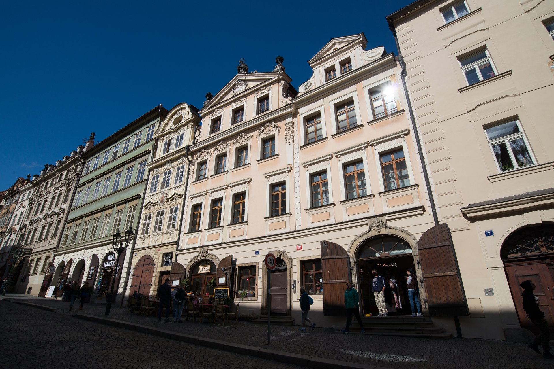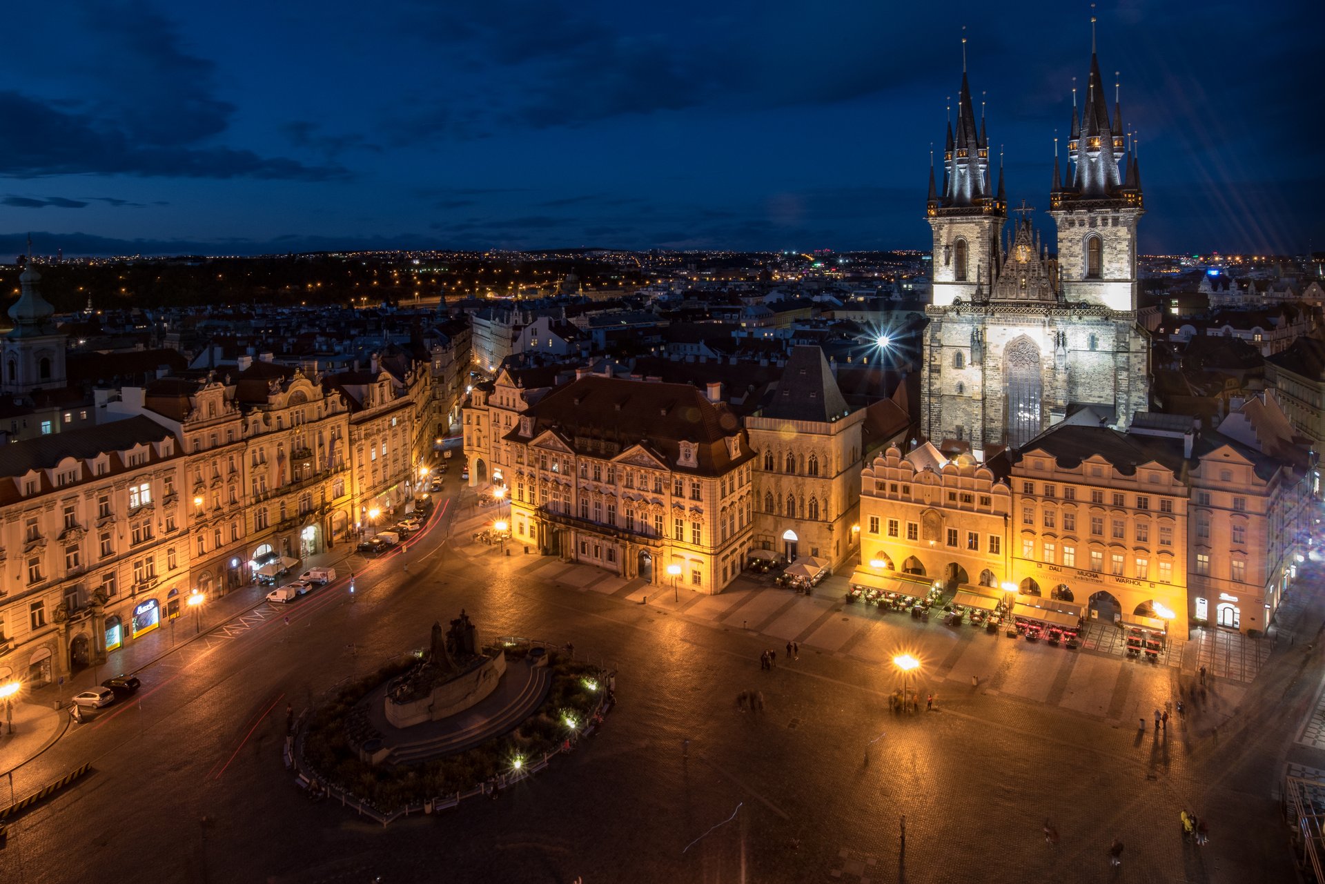 布拉格舊市政廳天文鐘塔上,對看泰恩教堂。