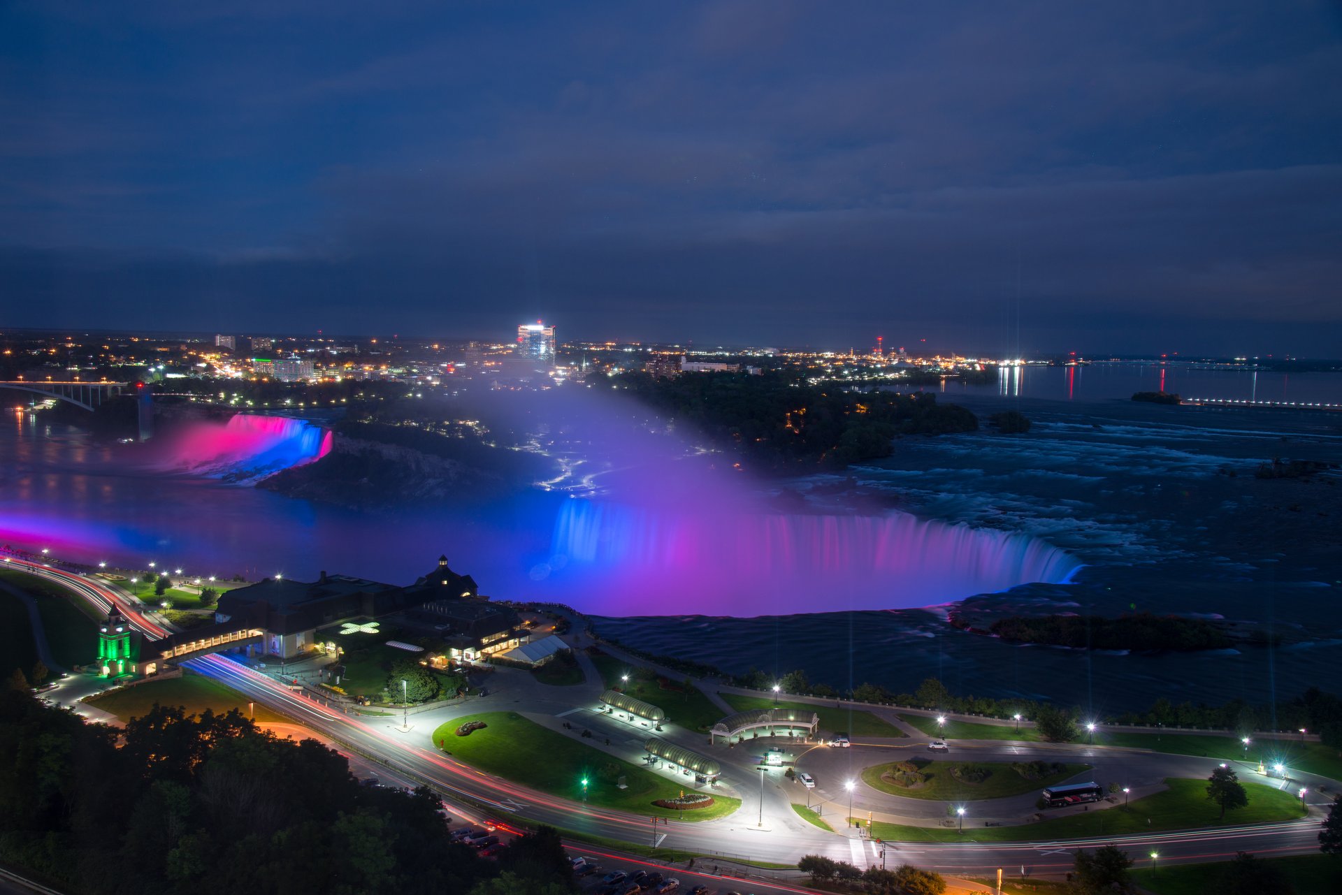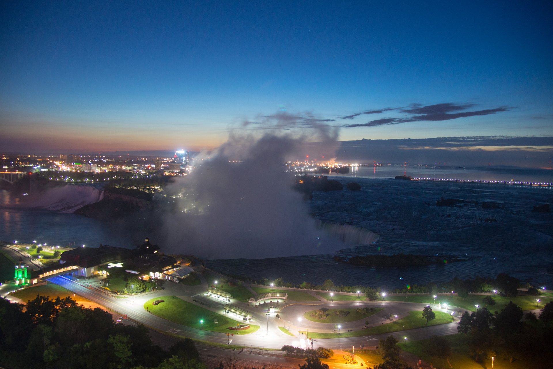 尼加拉瓜瀑布旅館房間落地窗前看瀑布夜景