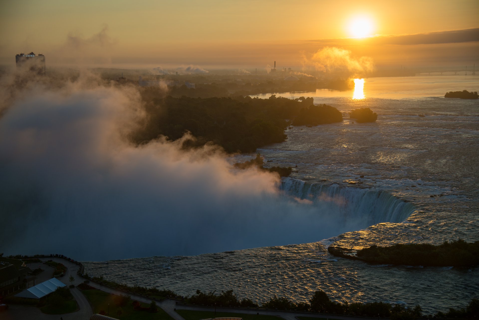 尼加拉瓜瀑布旅館房間落地窗前看瀑布日出大景