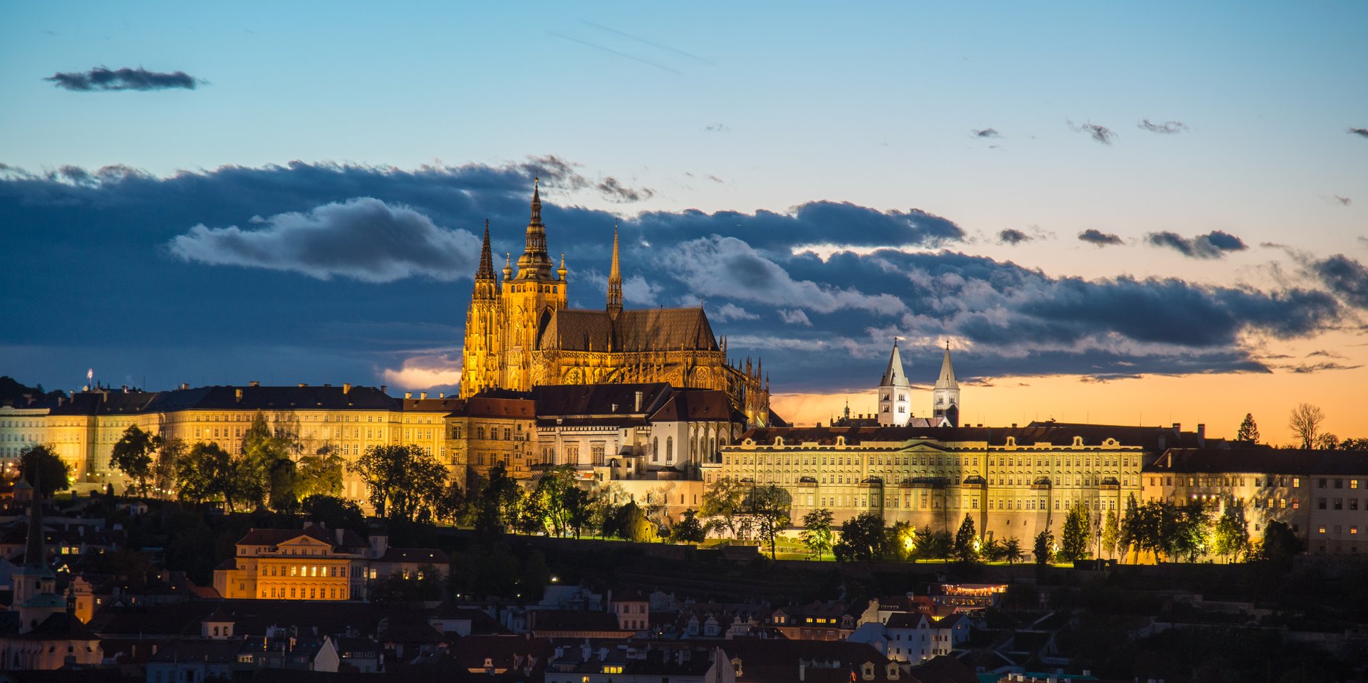布拉格舊市政廳天文鐘塔上,遠眺古堡皇宮區。